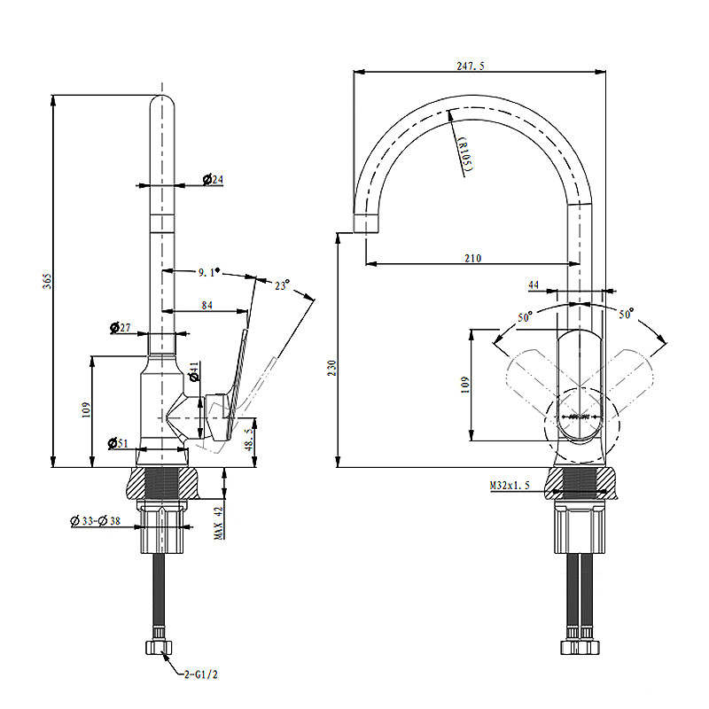 | Μέγεθος (χιλ.) | Φ51,247.5mm, 365mm |